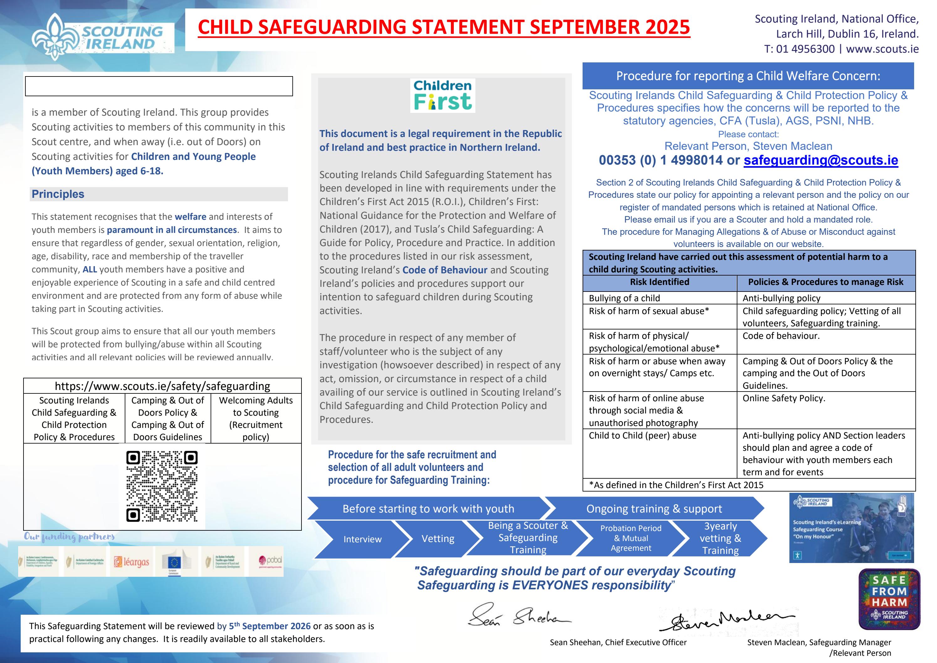 This is the current Child Safeguarding Statement template, released September 2025. This document is a legal requirement in the Republic of Ireland.
