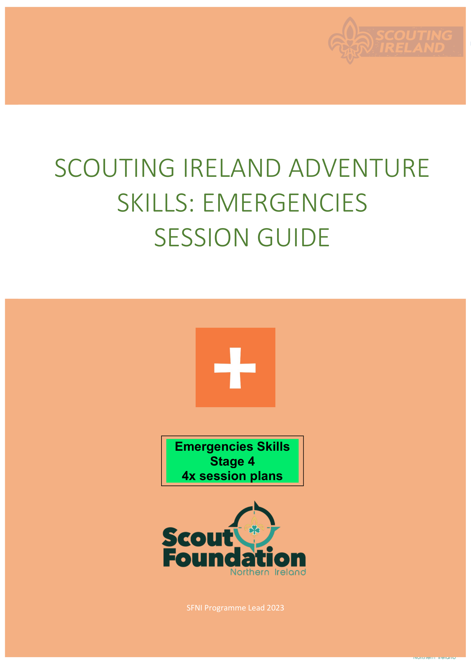 Stage 4 focuses on applied first aid and practical emergency response, including treating sprains, strains, fractures, choking, poisoning, and blisters. Scouts also learn pioneering skills for building improvisational stretchers, backwoods shelter construction, and safely moving an injured person. The final sessions include scenario-based assessments combining planning, navigation, teamwork, and hands-on emergency care to demonstrate full competence.