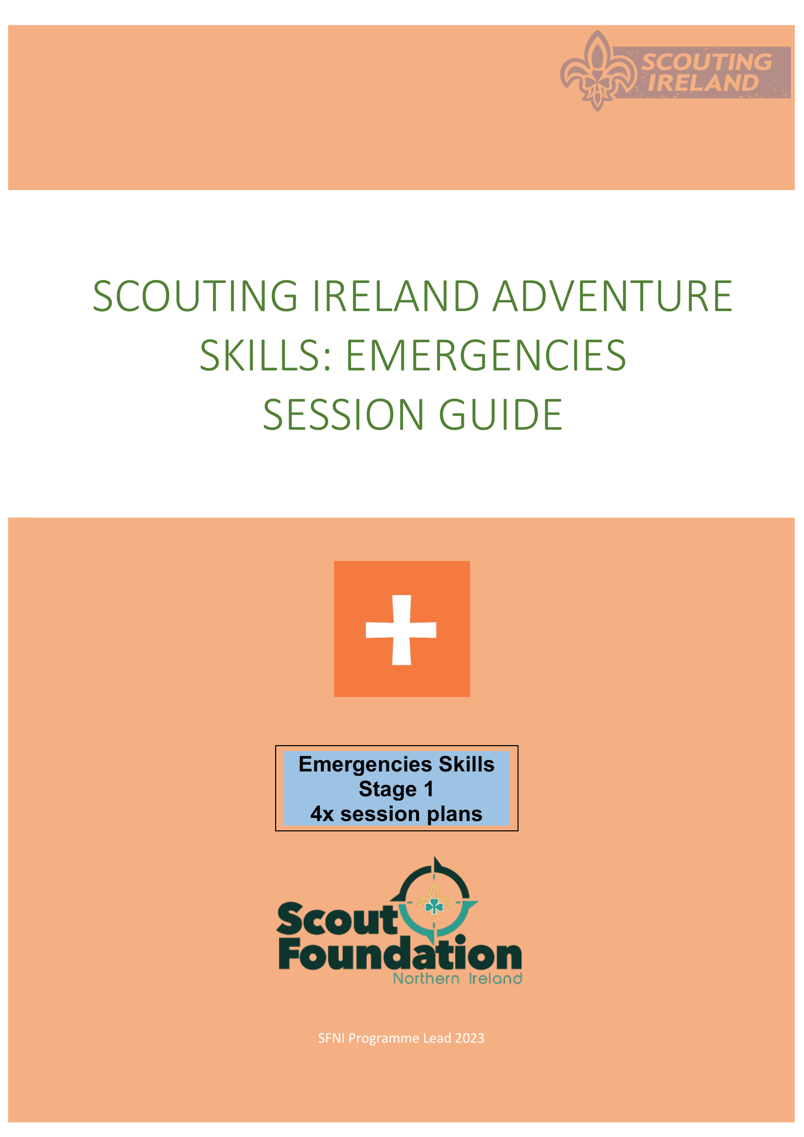 This guide introduces Scouting Ireland’s Emergencies Adventure Skills (Stages 1–4), providing practical first-aid knowledge and preparedness skills for youth members and Scouters. It outlines the core purpose of helping young people stay safe, respond to emergencies confidently, and develop lifelong first-aid abilities. The document serves as a simplified teaching resource, not a replacement for formal first-aid training.